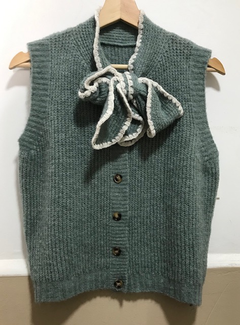 Chaleco punto., manga a la sisa , cierre frontal con botones,
